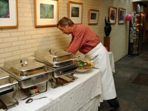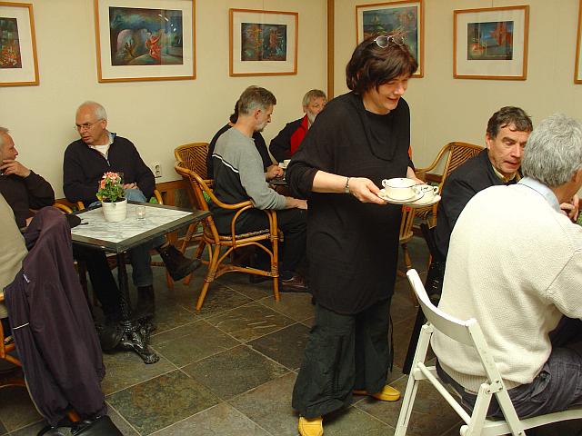 De planning was nogal strak en sloot niet feilloos aan op de Belgische eettradities. De eerste avondgangers kwamen al binnen vóór het toetje op de telloren lag. Als jarige heb ik op geen enkel moment enige vorm van paniek gevoeld omtrent deze afstemming. Deze kleine cultuurverschillen moeten zeker voor brabanders niet vreemd voorkomen. De plezierige huiskamersfeer en de gastvrijheid van Ans en Willem én de bijzonderheid van het moment deden de rest.
