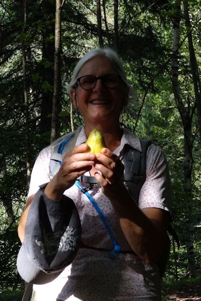 De wandeling ging over de Pfaffenstein en daarna door bos en veld naar ons volgende hotel in Krippen. Een lange niet al te zware tocht met veel zon en een terrasje onderweg waar we een extra hochwasser-gebakje hebben besteld.