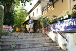 Op de laatste dag werden we bij de bushalte gedropt door de hotelbazin die de bustijden niet erg goed in haar hoofd had. Enfin, 1,5 uur later stonden we met onze bagage bij het eerste hotel waar de auto netjes stond te wachten. Via een smal paadje en dus meteen ook tegenliggers die van geen wijken wisten kwamen we weer in de bewoonde wereld en een uur later bij hotel Martha(***) in Dresden Neustadt. Dit was een oude sjieke buurt met leuke winkeltjes en aparte eettentjes in de onmiddelijke nabijheid. Nog een flinke wandeling gemaakt en neergestreken op een vol terrasje met tapas en een lekker wijntje. Lekker geslapen en heerlijk uitgebreid ontbeten in de buitenlucht.